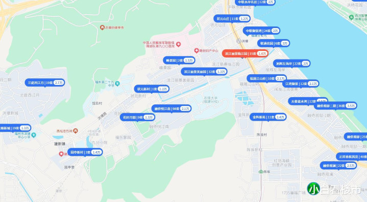 在洪塘路上的两侧,一面是空军医院,另一侧是滨江丽景的几个小区,都是在2003年左右的商品房,一时间也不会有其他土地被征迁或改造的可能。未来十几年的时间里,都会保持着这种现状,周边的房子只会慢慢变得老旧。
