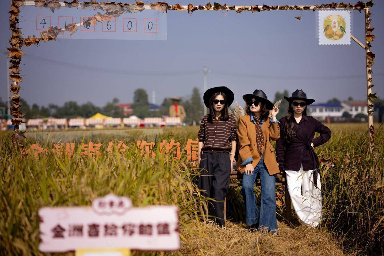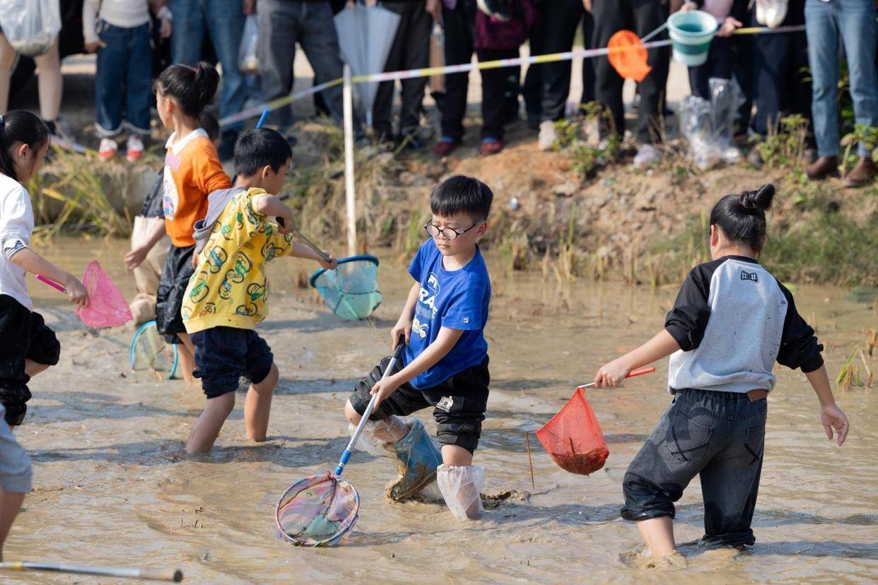 沿田埂蜿蜒而行,现场还设置了丰富多彩的田园体验与文化活动,4场摸鱼体验轮番上演,稻田水里鲜鱼四处游动,游客们挽起裤脚、赤着双脚,弯腰俯身追逐捕捞,欢呼声与惊笑声此起彼伏。草船借箭、射箭体验、游船赏景、稻穗插花等趣味项目分布在活动现场各处,令人目不暇接。