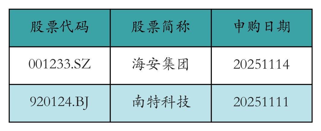 二、新股申购情况上周有2只新股发行,详情见下表: